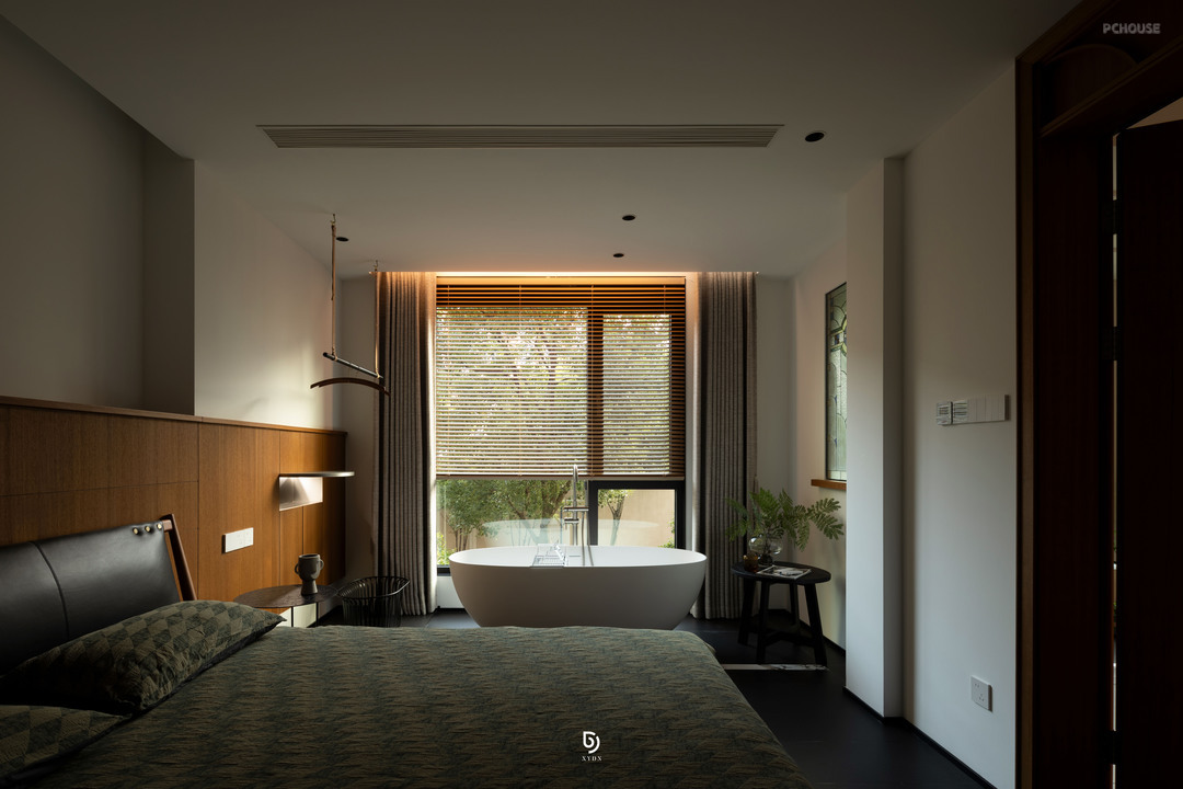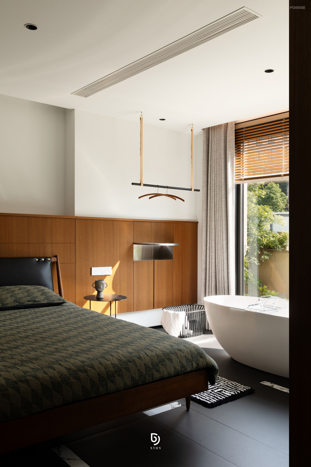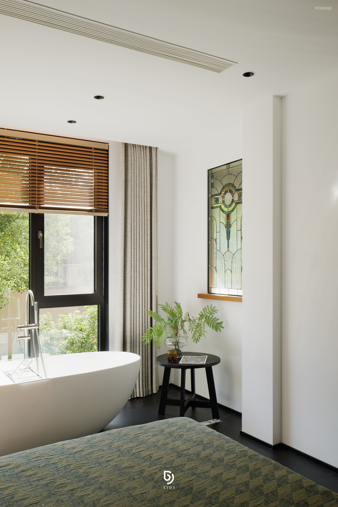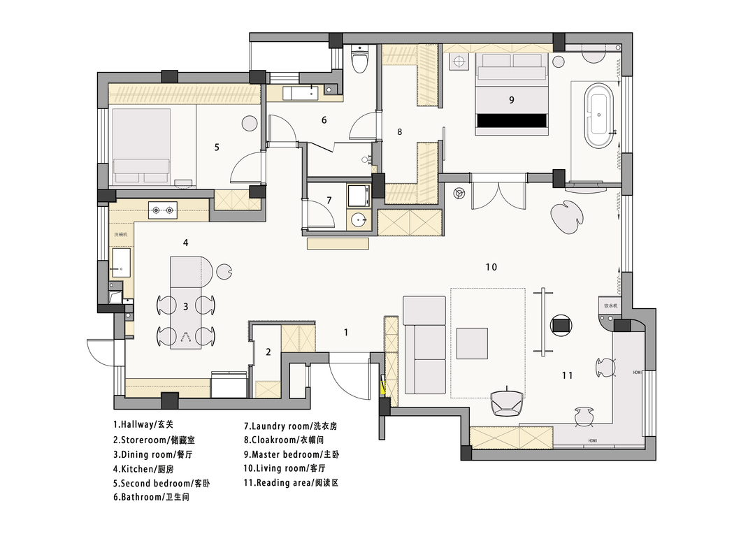 3.卫生间合二为一,额外划分出衣帽间、洗衣房空间,浴缸放置在主卧。