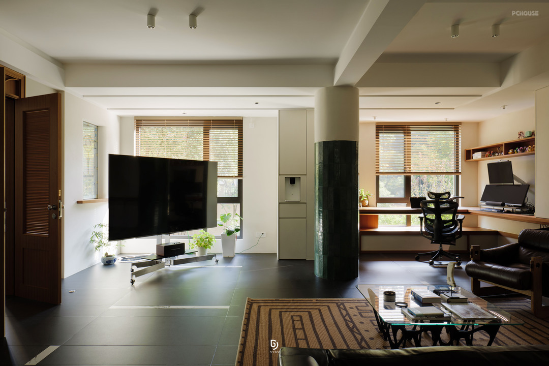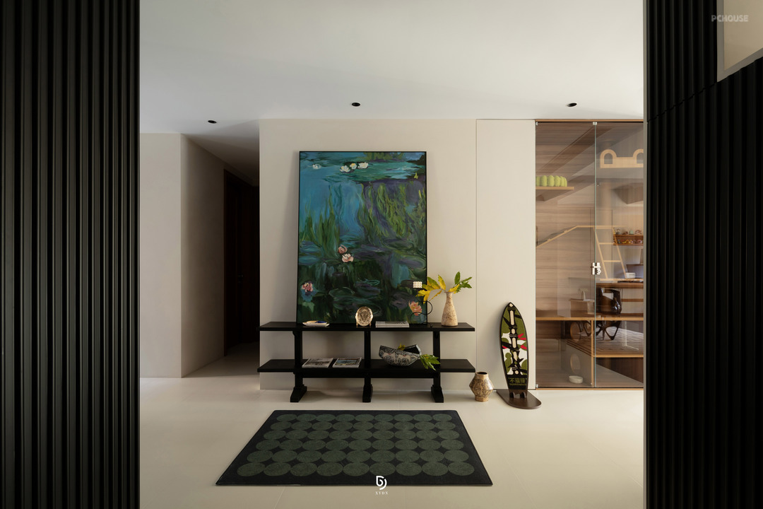 2.开放式客厅,融合会客、阅读、游戏娱乐、健身于一体的多功能空间。